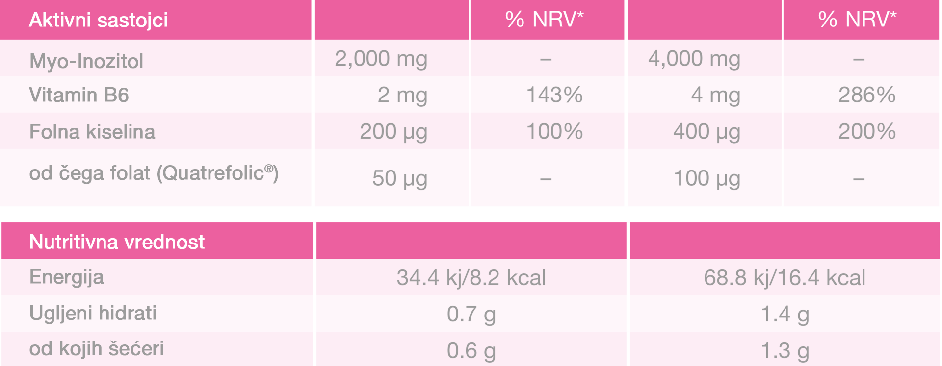 - Želja za trudnoćom i PCOS: 2 kesice dnevno (takođe za pripremu ili podršku IVF-u*).